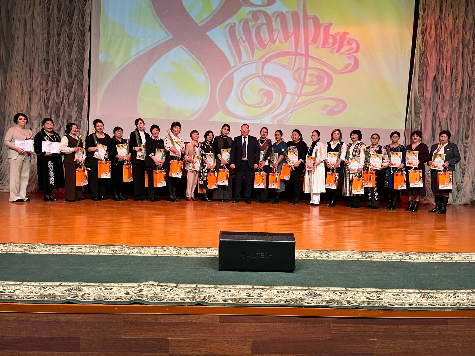 Мерекелік жиында әйел-аналарға құрмет көрсетіліп, жылы лебіздер айтылды. Нәзік жандыларға көтеріңкі көңіл-күй сыйланып, мерекелік құттықтаулар жолданды.
