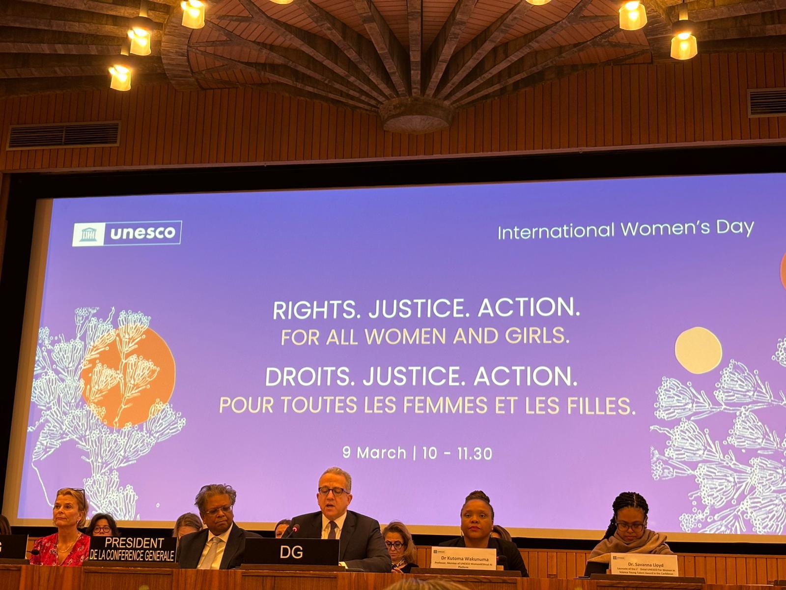 ЮНЕСКО Бас директоры Халед әл-Анани кездесуде сөз сөйлеп, Ұйымның білім беру, ғылым және мәдени саясат салаларында гендерлік теңдікті қамтамасыз ету жөніндегі күш-жігеріне шролу жасады.
