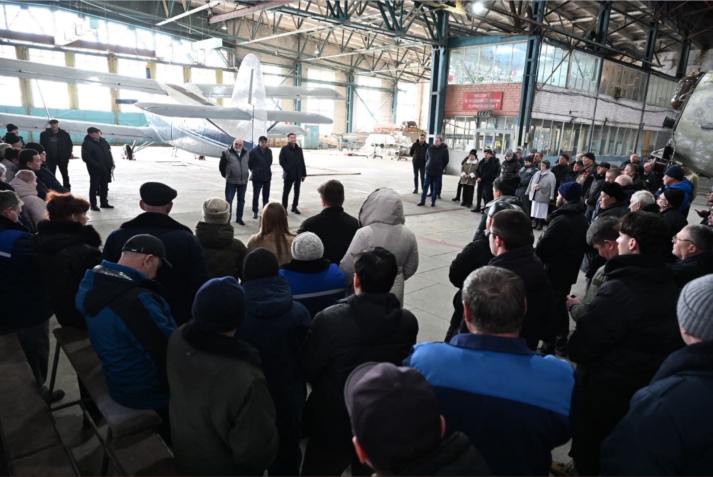 1939 жылы негізі қаланған зауыт ұшақтар мен тікұшақтарды жөндеу және құрастыру жұмыстарымен айналысады. Кәсіпорынға Қазақстанның түрлі өңірлерінен тапсырыс түседі. Мұндай қызмет жоғары жауапкершілікті, күрделі техникалық жабдықтармен жұмыс істеуді және халықаралық сапа мен қауіпсіздік талаптарын қатаң сақтауды қажет етеді. Осы тұрғыдан алғанда, кәсіпорынның тұрақты әрі тиімді жұмыс істеуі үшін жаңа Конституция жобасында көрініс тапқан заң үстемдігі, еңбексүйгіштік, білім мен прогресс құндылықтарын дәріптеу, сондай-ақ жоғары экологиялық мәдениетті қалыптастыру қағидаттарының маңызы зор. Кездесу барысында өңірлік коалиция мүшелері Абай Сақтағанов пен Сергей Вищняк жаңа Конституция жобасы азаматтардың еңбек ету құқығын қамтамасыз етумен қатар, әділ еңбекақы төлеу мәселесіне де ерекше мән беретінін атап өтті. Сонымен бірге мемлекет азаматтарға қауіпсіз еңбек жағдайын қалыптастыру және әлеуметтік қорғау шараларын қамтамасыз ету міндетін өз мойнына алатыны айтылды.