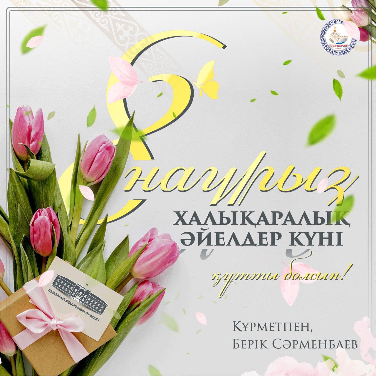Сіздерді көктемнің жарқын мерекесі — 8 наурыз, Халықаралық әйелдер күнімен шын жүректен құттықтаймын! Адамзат үшін анадан асқан, асыл және қымбат ешкім жоқ. Сондықтан әлемдегі ең жоғары мақтау сөздері мен терең құрмет аналар мен әйелдерге арналған. Мемлекет Басшысы Қасым-Жомарт Кемелұлы Тоқаев: “әйел жұртшылықтың отбасындағы, қоғам өміріндегі және мемлекеттің жан — жақты даму ісіндегі рөлі орасан зор”, – деп атап өтті. Бүгінгі таңда біздің қымбатты әйелдеріміз еліміздің экономикалық, әлеуметтік, саяси және рухани салаларында жүзеге асырылып жатқан өмірлік маңызды өзгерістерге белсенді қатысып, мемлекетіміздің қуатын нығайтуға баға жетпес үлес қосуда. Қоғамның дамуын әйелдерсіз елестету мүмкін емес — өмірде нәзік, істерде дана және жұмыста жігерлі. Ана әйелдер тек өз ісінің мамандары ғана емес, сонымен қатар отбасының әл-ауқаты мен бірлігінің тірегі, қайнар көзі болып табылады. Ананың бақыты мен әйелдің қуанышы-әр отбасының және бүкіл Отанның беделі. Олар айтқандай: “ана Бір қолымен бесікті, ал екінші қолымен бүкіл әлемді тербетеді”. Сондықтан сізге деген құрметіміз шексіз. Құрметті аналар мен әдемі ханымдар! Көктеммен бірге келген бұл жарқын мереке сізге тек қуаныш әкелсін! Сіздің жүздеріңіз әрқашан мейірімділік пен жылулық сыйлағанын тілеймін. Сізге мәңгілік бақыт, ұзақ және гүлденген өмір, отбасыларыңызға бейбітшілік пен өркендеу тілеймін!
