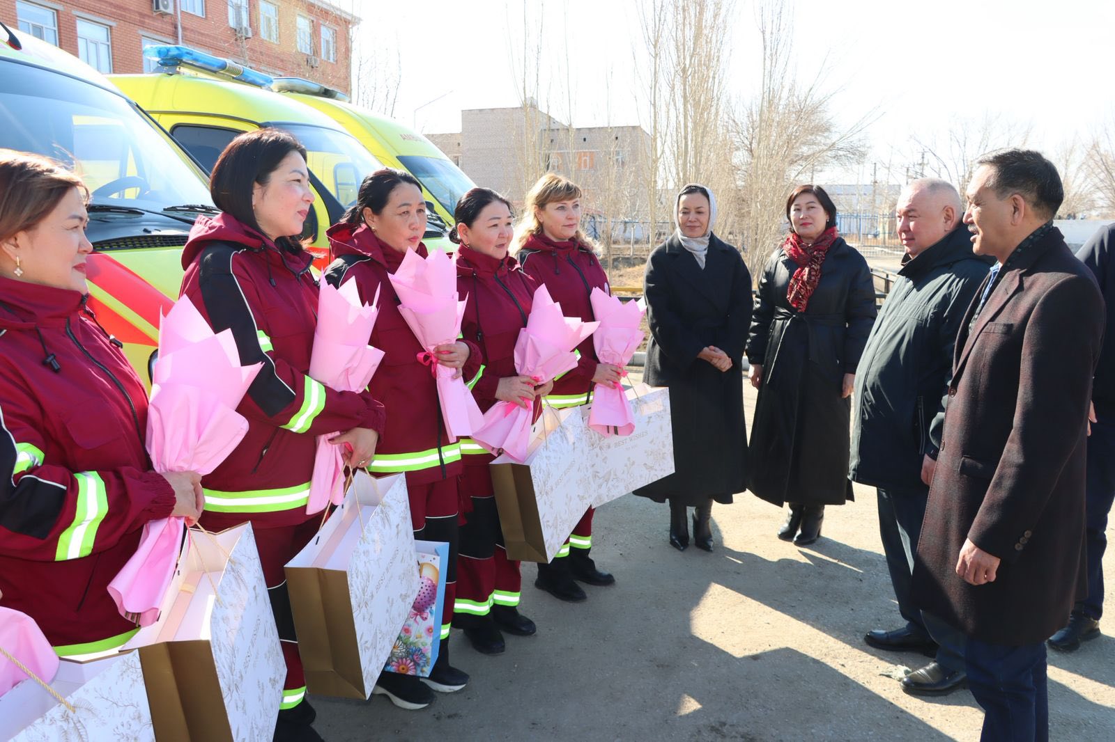 Бүгін аудан әкімі Берік Сәрменбаев аудандық мәслихат төрағасы Ержан Әжікеновпен бірге жедел жәрдем қызметкерлерін 8 наурыз – Халықаралық әйелдер күні мерекесімен құттықтады.