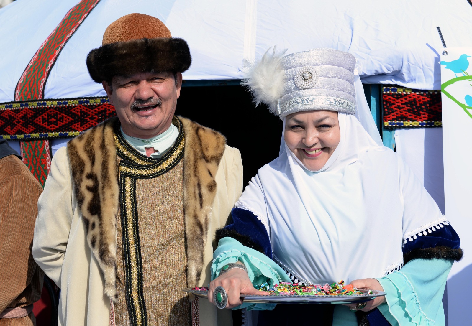 Театрландырылған көрініс: Наурыз мерекесінің шығу тарихы мен қазақтың ежелгі салт-дәстүрлерінен қойылымдар (қыз ұзату, бет ашар, тұсау кесу).