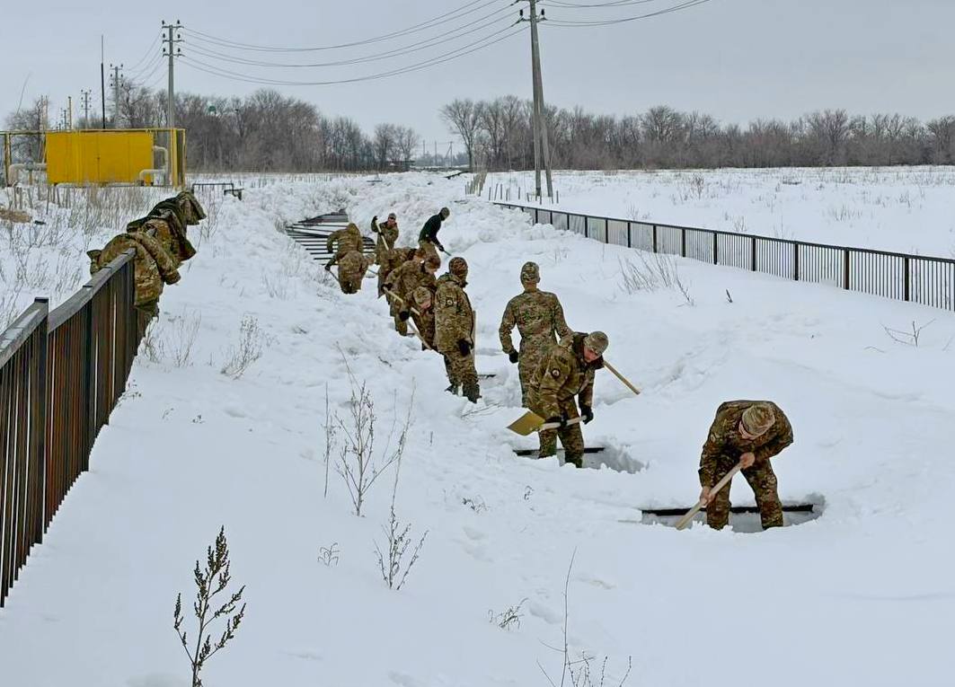 Жұмыстар екі апта бойы жергілікті атқарушы органдардың өкілдерімен, төтенше жағдайлар бөлімшелері және азаматтық қорғаныс қызметтерімен бірлесіп жүргізілуде. Әскери бөлімнің 50-ге жуық офицері мен сержанты арықтарды тазалап, олардың арнасын тереңдетіп, су ағарларды қар мен мұздан аршып жатыр.