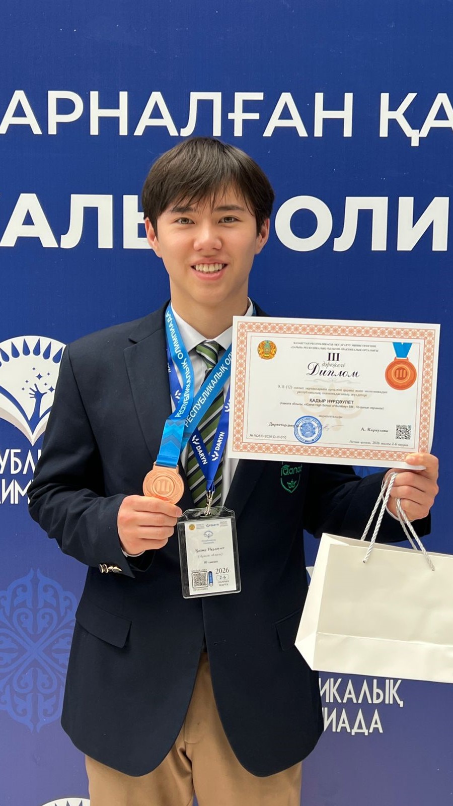 Олимпиада қорытындысы бойынша Қадыр Нұрдәулет ІІІ дәрежелі дипломмен марапатталды.