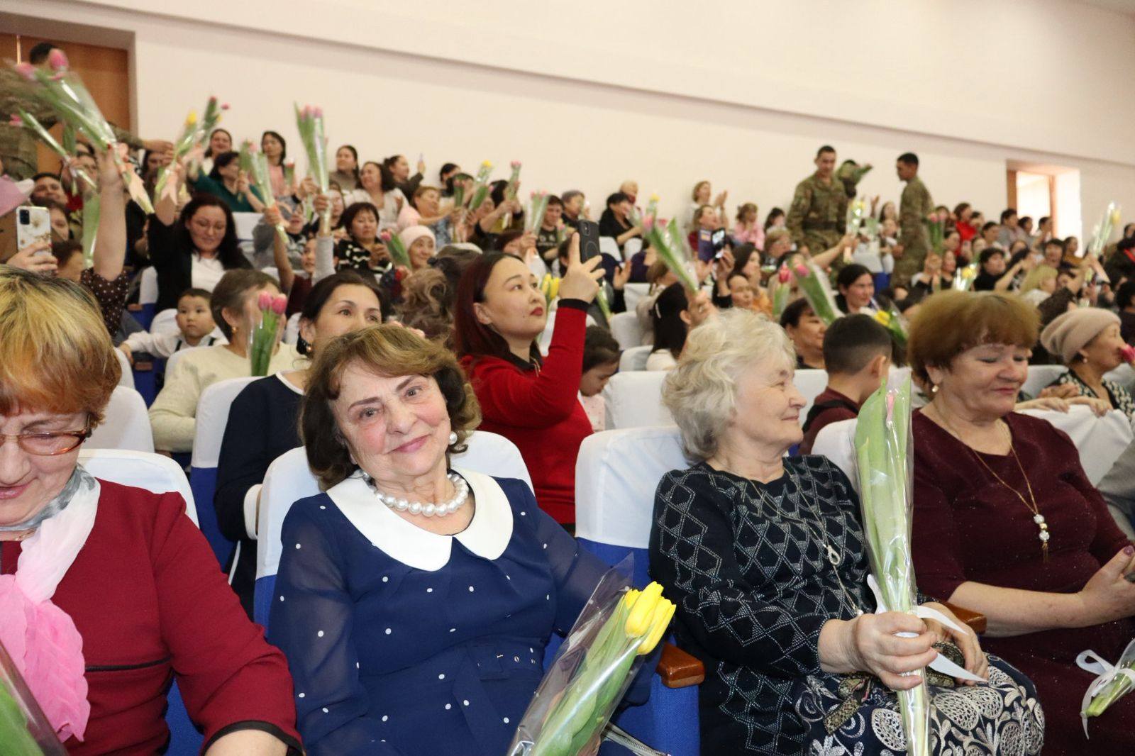 Іс-шара соңында барлық әйелдерге Халықаралық әйелдер күні қарсаңында құрмет пен ризашылықтың символы ретінде гүлдер табысталды.
