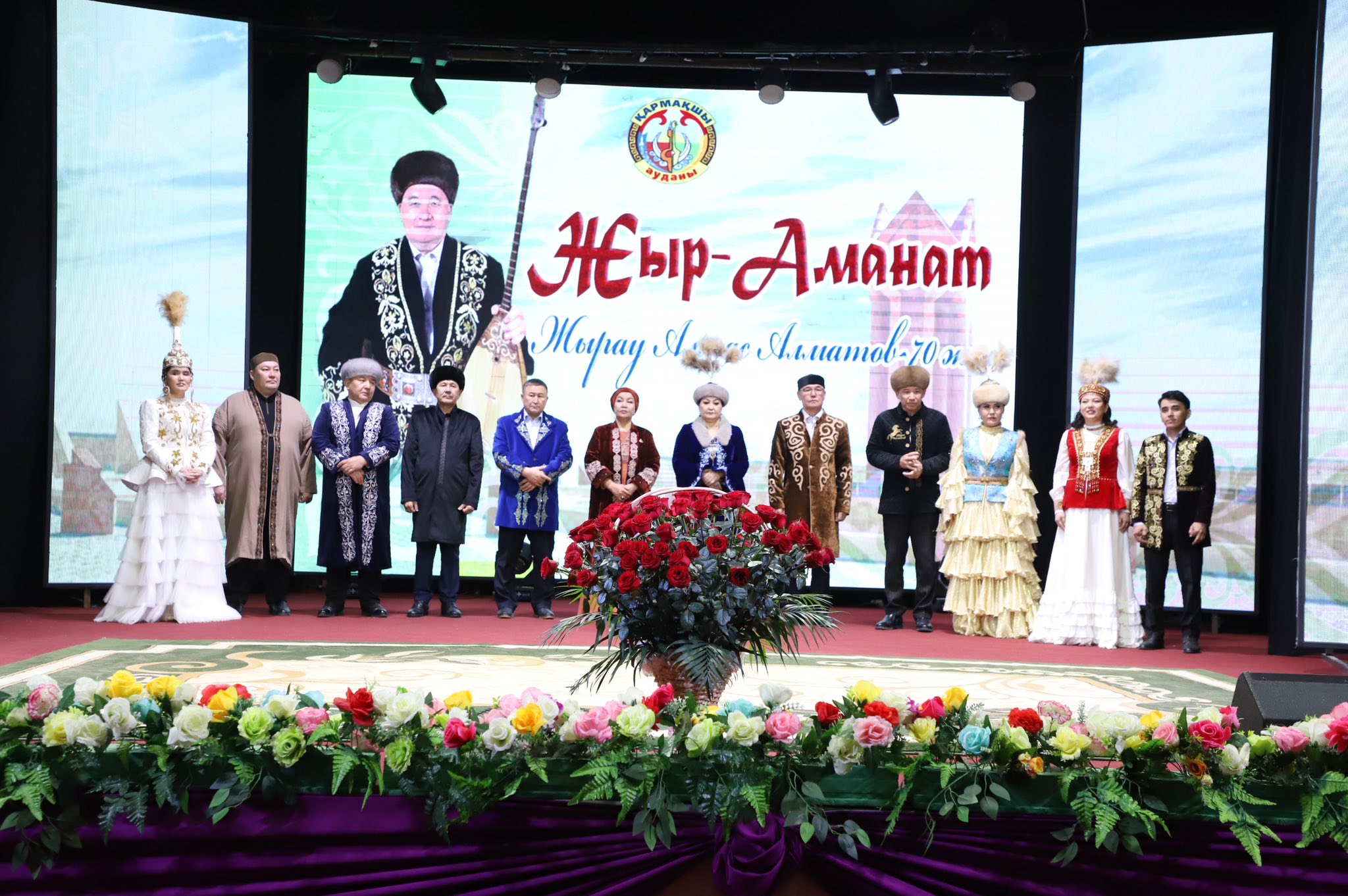 Бүгін Шамшат Төлепова атындағы аудандық мәдениет үйінде Қазақстанның еңбек сіңірген қайраткері, III дәрежелі «Барыс» орденінің иегері, профессор, жырау Алмасбек Алматовтың 70 жылдық мерейтойына арналған «Жыр – аманат» атты республикалық жыршы-жыраулар фестивалі өтті.