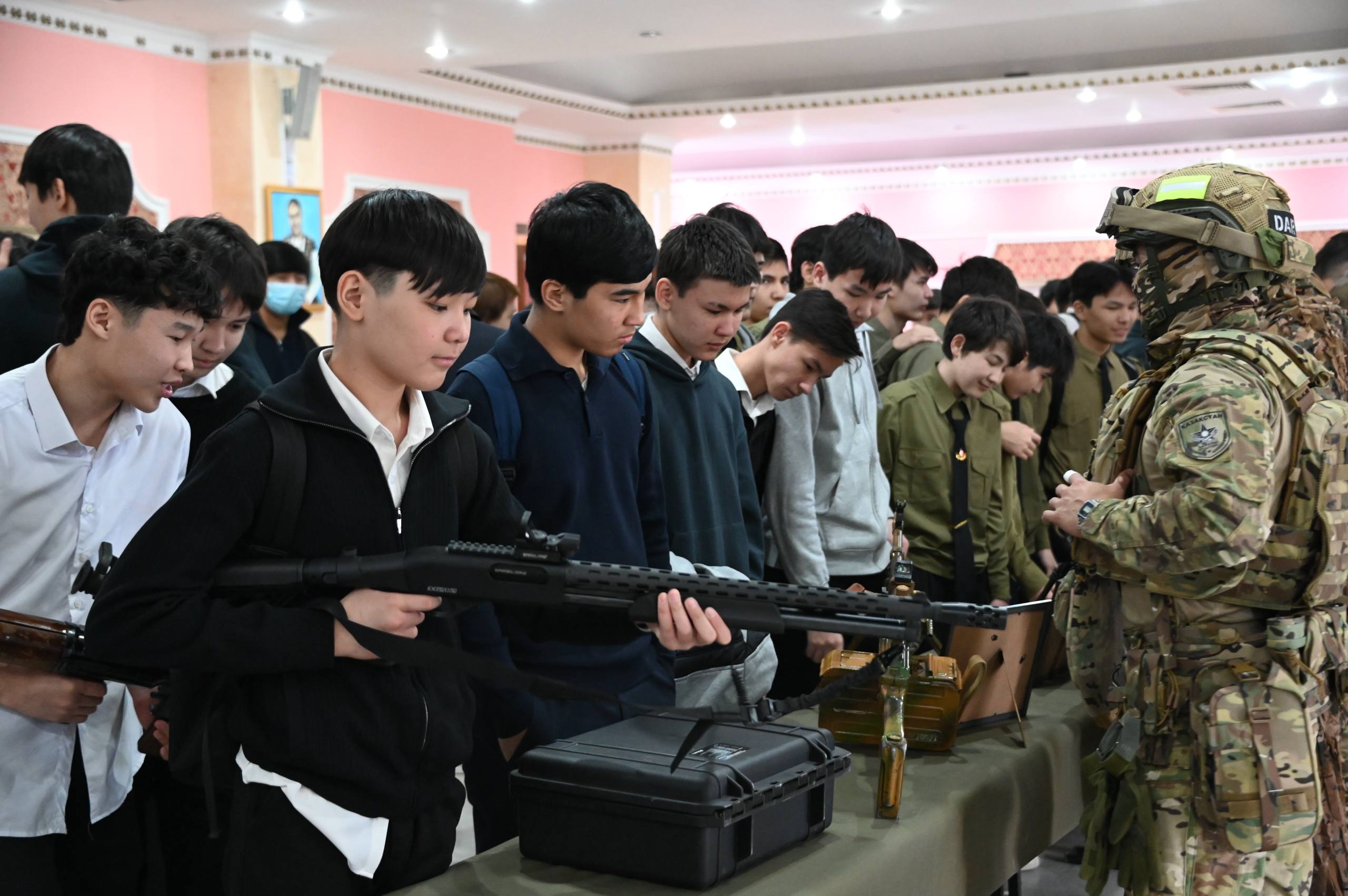 Жастар үшін көшпелі көрме ұйымдастырылып, онда заманауи атыс қаруларының үлгілері мен Ұлы Отан соғысы кезеңінің экспонаттары таныстырылды. Оқушылар қару-жарақ үлгілерін көріп, әскери жарақ элементтері мен бронежилеттерді киіп көруге мүмкіндік алды.