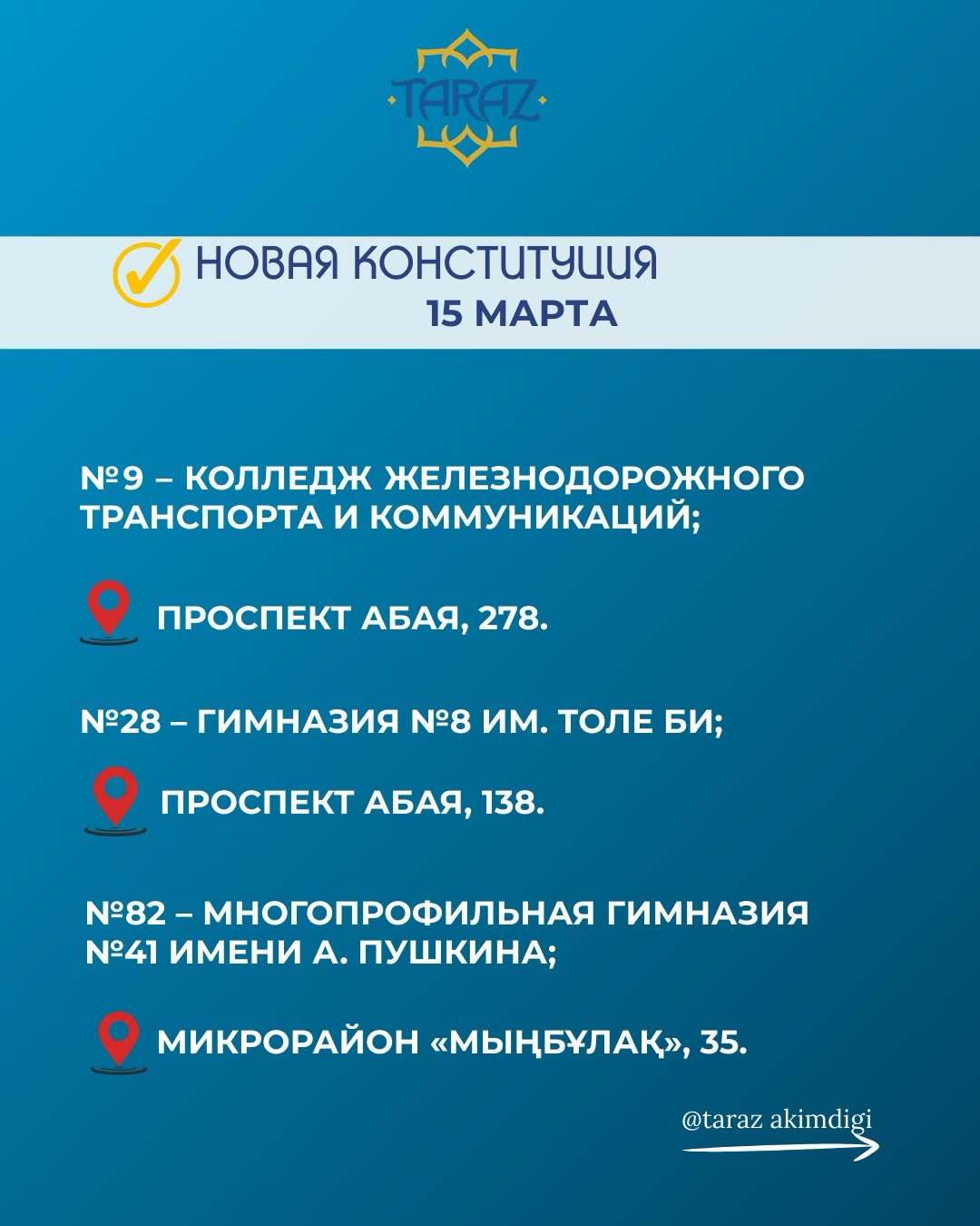 №9 – Тараз теміржол көлік және коммуникация колледжі;