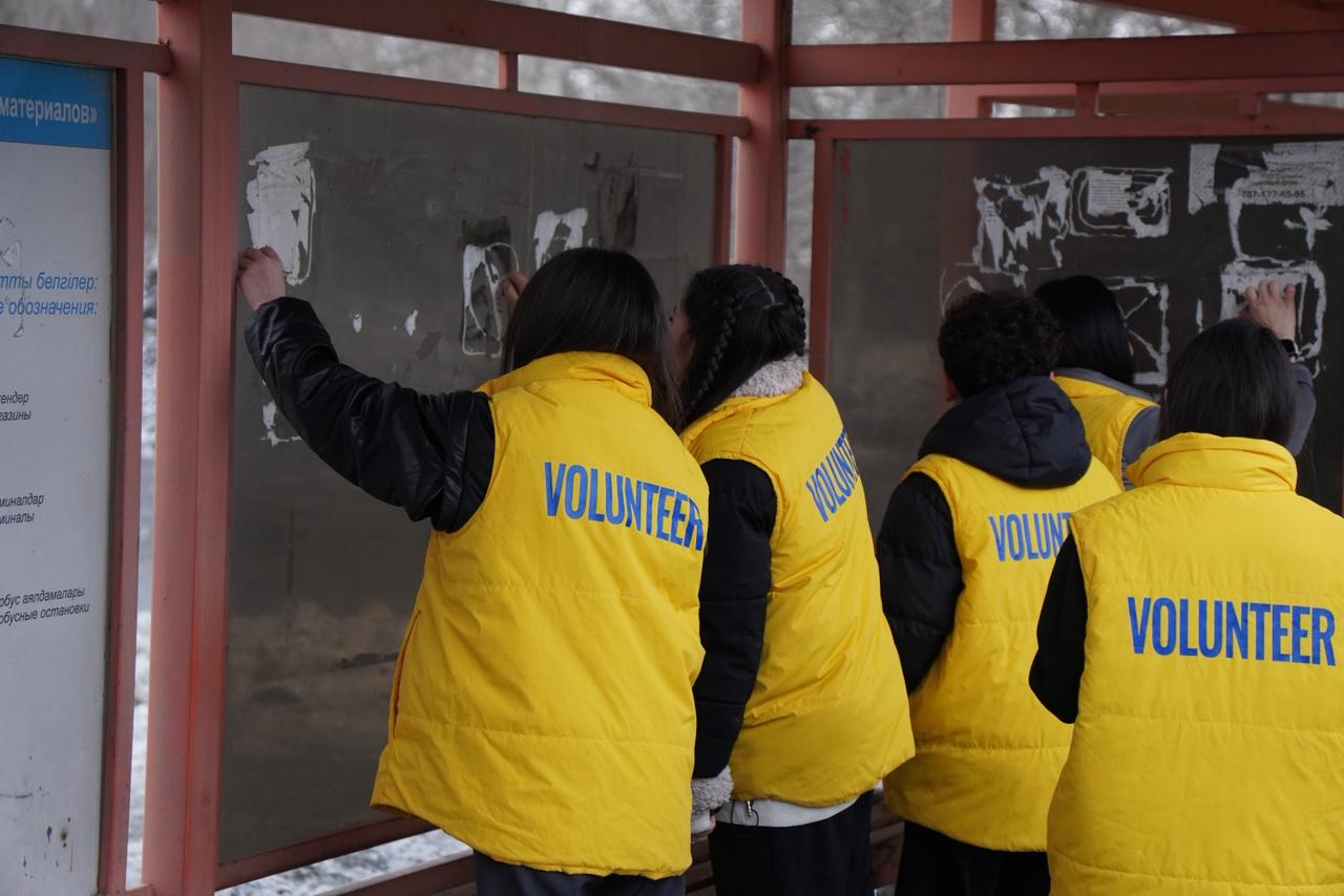 Акцияға «Қалалық волонтерлер фронт-офисінің» еріктілері қатысты. Жастар аялдама кешендерін, ғимараттардың қабырғаларын, бағаналарды және рұқсатсыз хабарландырулар жиі ілінетін басқа да қоғамдық нысандарды тазалау жұмыстарын жүргізді.