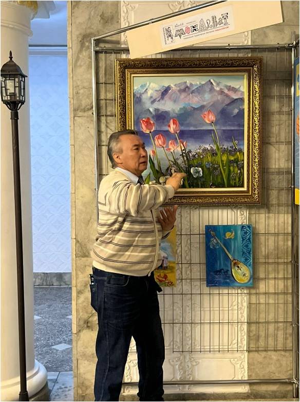 Көрме барысында ұлттық мәдениет, салт-дәстүрлер және рухани құндылықтарды бейнелейтін көркем шығармалар ұсынылды. Студенттер суретшінің шығармашылығымен танысып, мәдени мұраны сақтау маңыздылығы туралы пікір алмасты және авторға сұрақтар қоюға мүмкіндік алды. Іс-шара жылы әрі танымдық атмосферада өтіп, жастардың өнер мен дәстүрлерге деген қызығушылығын арттырды.