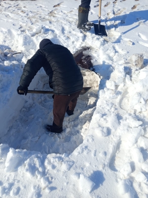 Озерный ауылдық округінде «Таза Қазақстан» экологиялық акциясы аясында су өткізу құбырлары қардан тазартылуда.