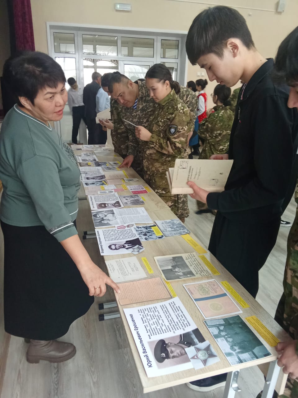 Мектеп әкімшілігінің шақыруымен Әулиекөл өңірлік мемлекеттік архивінің архивистері дөңгелек үстелге қатысып, «Ауған таулары арасында» атты фотодеректі көрме ұсынды. Сонымен қатар Ауғанстанда әскери қызмет атқарған жауынгерлердің жеке тектік құжаттарының құрамы мен мазмұны туралы айтып, тарихи жадыны сақтаудың маңыздылығына тоқталды.