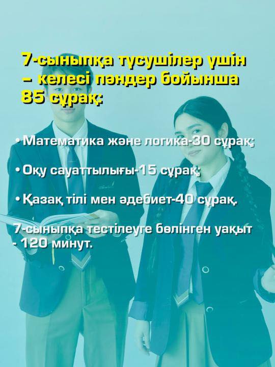 Тіркеу 15 сәуірде аяқталып, үміткерлер үш пән бойынша арнайы тестілеуге қатысады. Іріктеуден сәтті өткен балалар республикалық мектепте білім алу мүмкіндігіне ие болады.