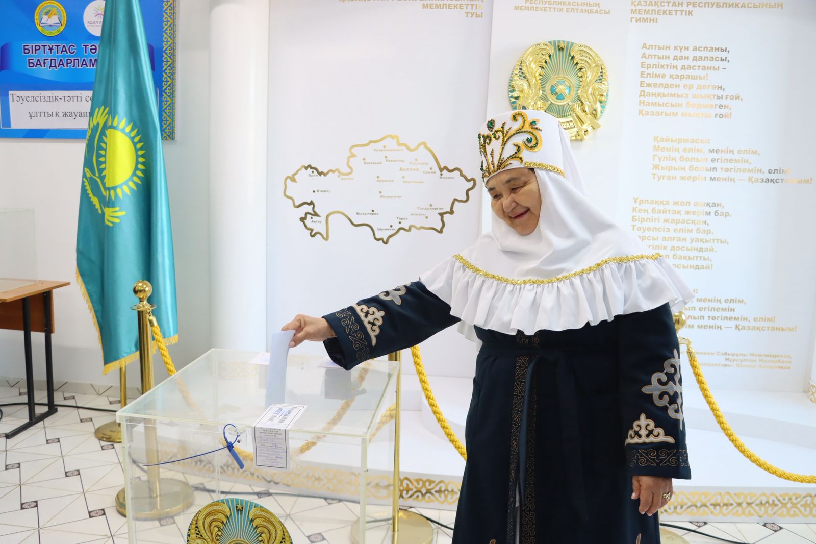 Бүгін «Ару ана» әжелер ансамблінің мүшелері №158 сайлау учаскесіне барып, ел болашағы үшін өз таңдауларын жасады.