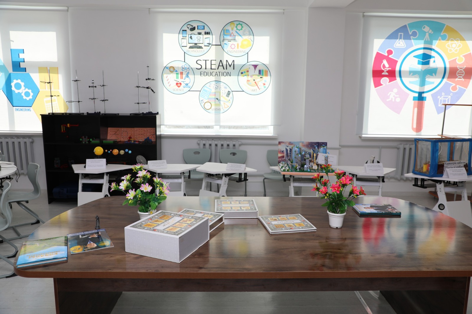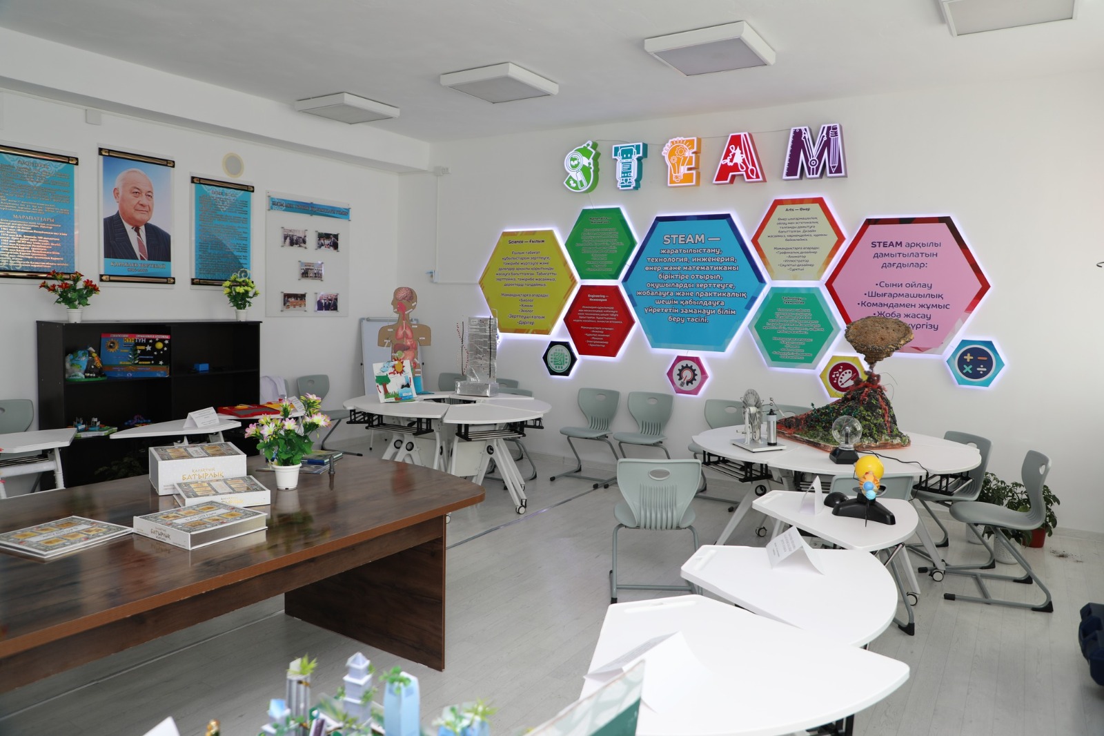 STEAM (Science, Technology, Engineering, Art, Mathematics) бағытындағы кабинетте жаратылыстану, технология, инженерия, өнер және математика пәндері өзара кіріктіріліп оқытылады. Мұнда оқушылар түрлі зертханалық жұмыстар жүргізіп, инженерлік жобалар құрастырып, нақты өмірлік мәселелерге практикалық шешімдер табуға машықтанады. Сонымен қатар, жаңа форматтағы оқу кеңістігі балалардың цифрлық сауаттылығын арттырып, командалық жұмыс дағдыларын дамытуға мүмкіндік береді.