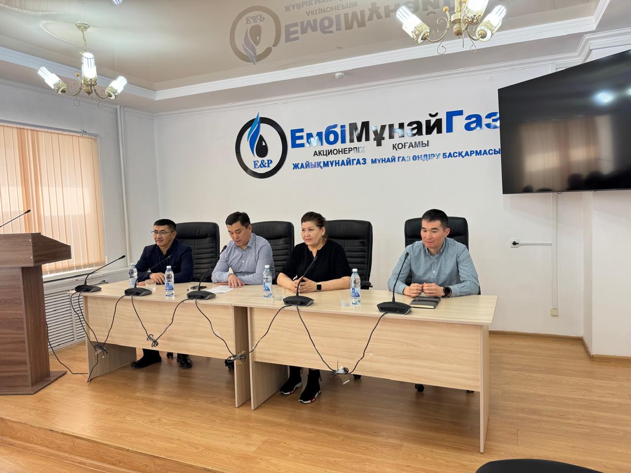 Тексеру барысында мемлекеттік еңбек инспекторлары «ЕмбіМұнайГаз» акционерлік қоғамы «ЖайықМұнайГаз» мұнай газ өндіру басқармасы қызметкерлерімен кездесу ұйымдастырып, жұмыс беруші мен жұмыскер арасындағы еңбек қатынастарының заңдылықтарына қатысты түсіндірме жұмыстарын жүргізді.
