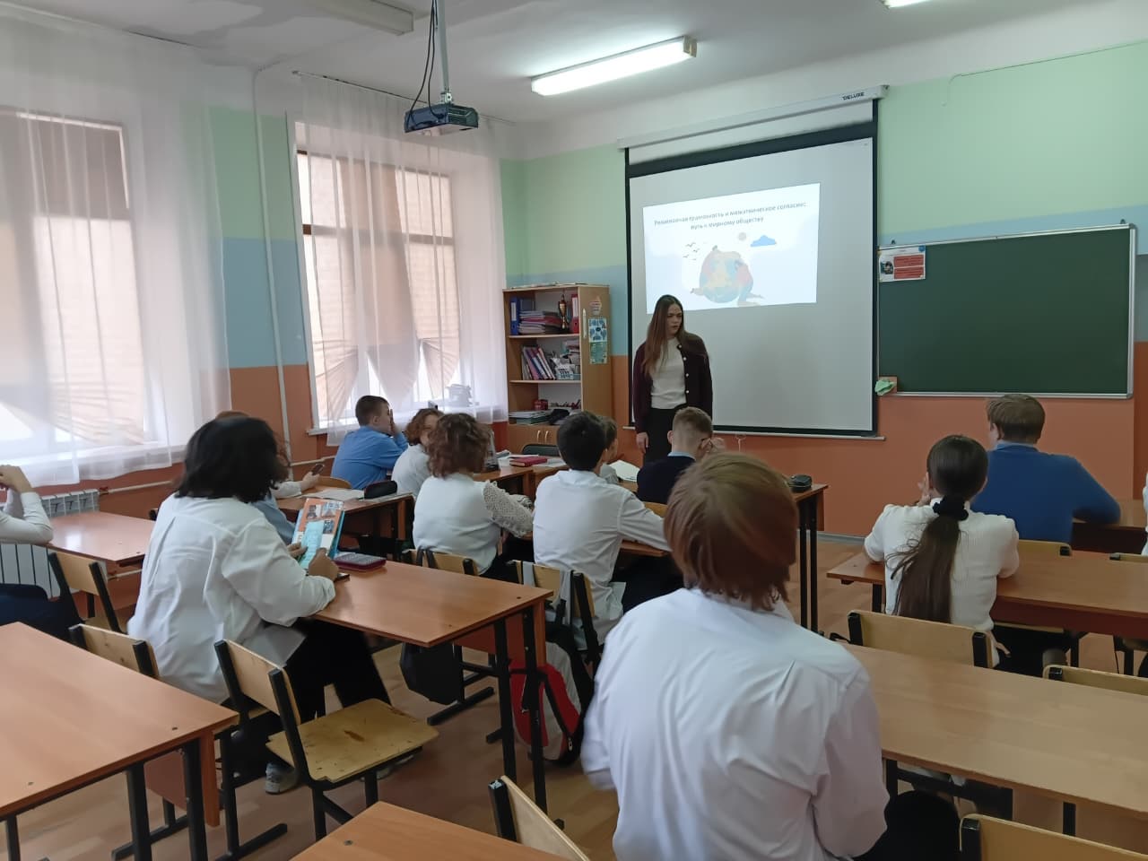 Оқушылар белсенділік танытып, сұрақтар қойды және өз пікірлерімен бөлісті. Ашық диалогтың мұндай форматы құқықтық мәдениетті нығайтуға және сыни ойлауды дамытуға ықпал етеді.