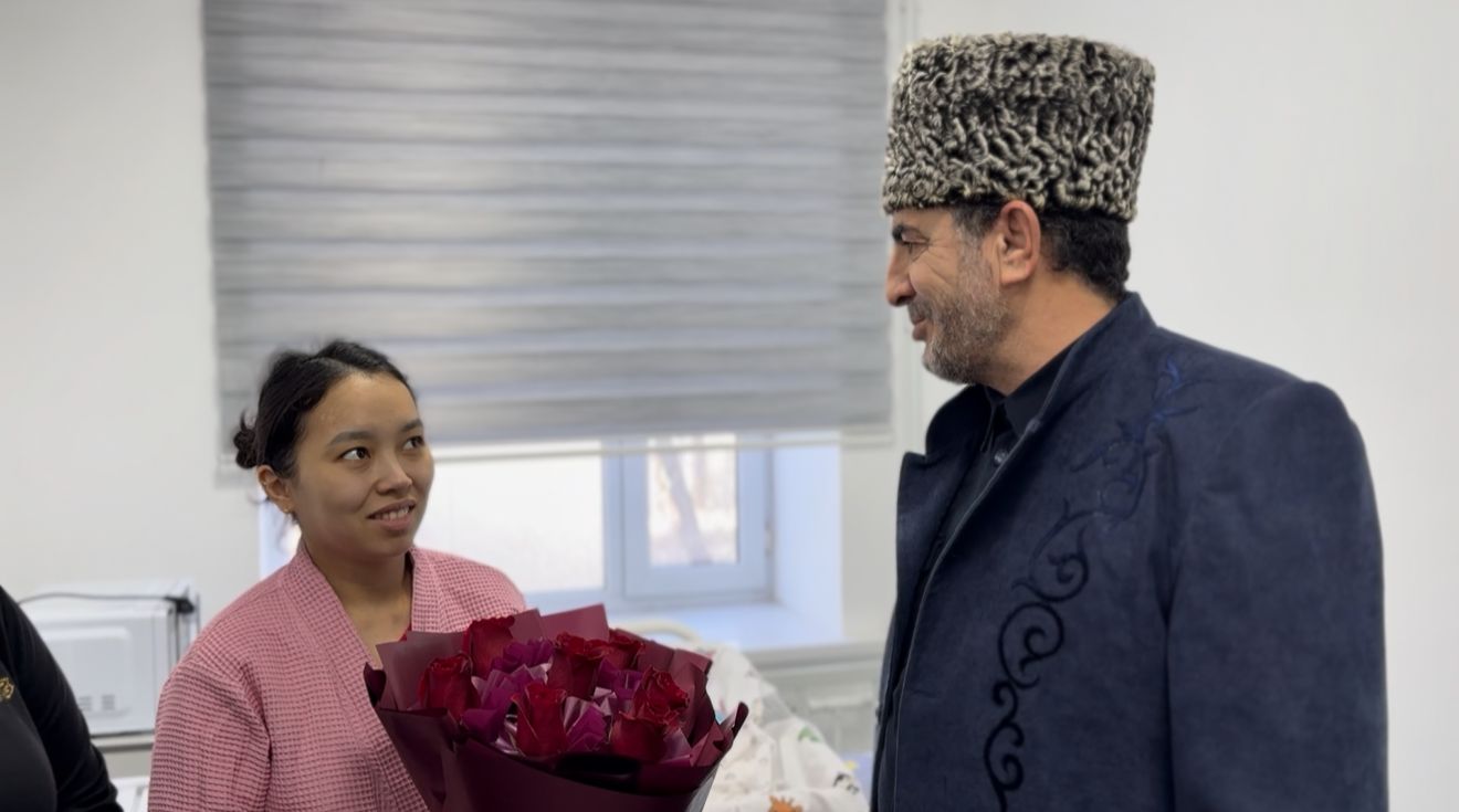 Қарағанды қаласындағы №1 Перинаталды орталықта «Вайнах» чечен-ингуш этномәдени бірлестігінің төрағасы Увайс Джанаев пен бірлестік Аналар кеңесінің мүшесі Раиса Исраилова осы күні сәбиін дүниеге әкелген жас ана Айжан Азимбайды шын жүректен құттықтады.