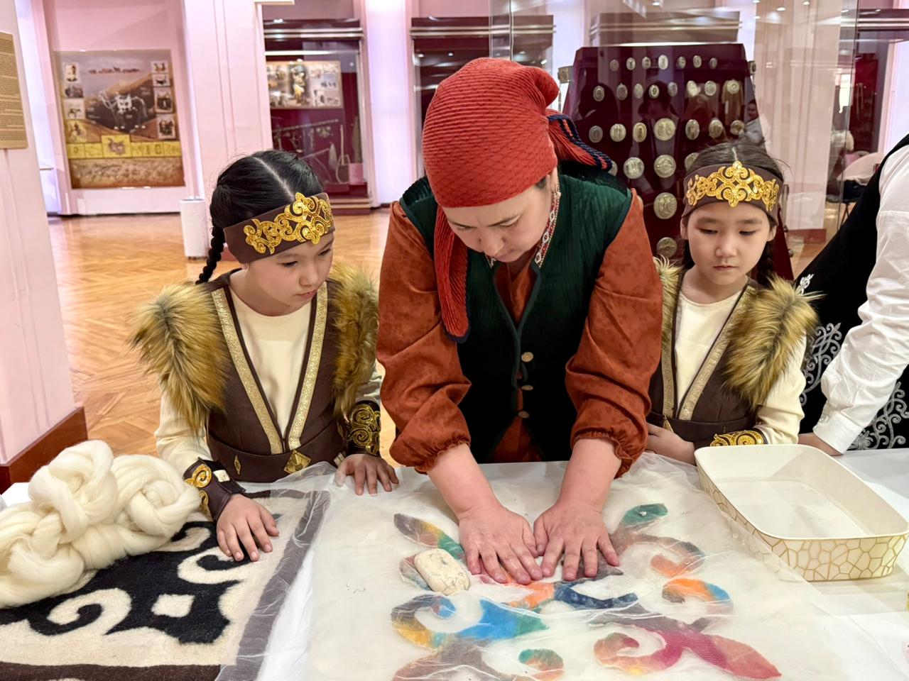 Этнография залында өткен шараға қатысушылар дәстүрлі бұйымдарды жасау әдісін көріп, халық өнерінің шеберлерімен танысты. Сырмақ жасау, басқұр тоқу, киіз басу және құрақ көрпе тігу шеберлері өз өнерін көрсетіп, шеберлік сабақ өткізді.