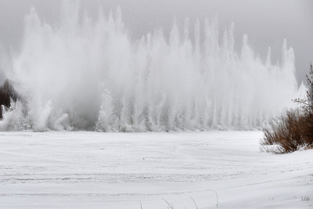 Өткен жылдардың тәжірибесін ескере отырып, тасқын судың қауіпсіз өтуін қамтамасыз етудің тиімді тәсілдерінің бірі – мұзды ұсақтау үшін бақыланатын жару жұмыстарын жүргізу.