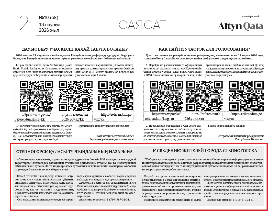 СТЕПНОГОРСК ҚАЛАСЫНЫҢ ТҰРҒЫНДАРЫНЫҢ НАЗАРЫНА