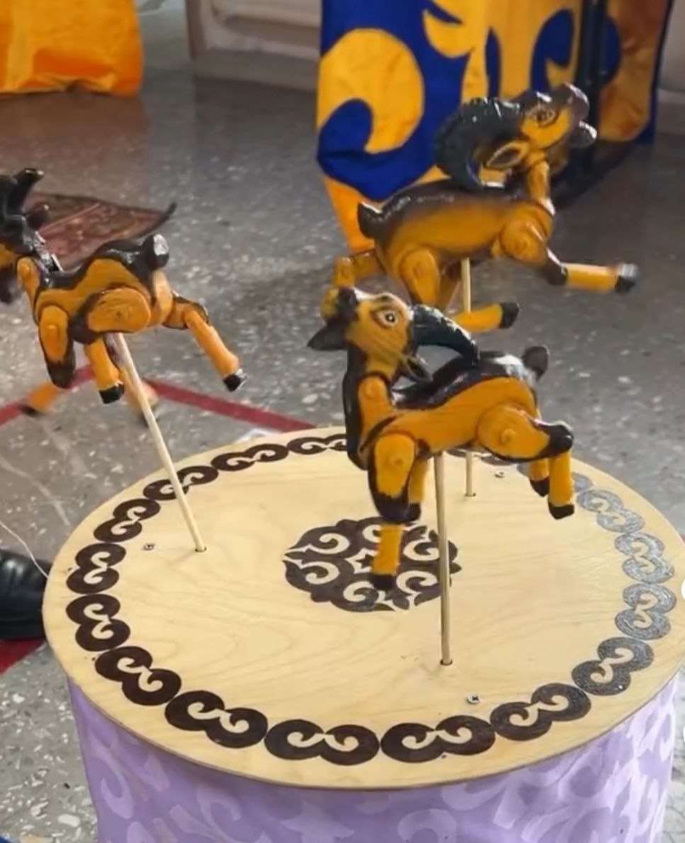 Орындау барысында музыканттың саусақтарына жіңішке жіптер байланып, сол арқылы ағаштан жасалған жануар мүсіндерін басқарады. Әуен ырғағына сай олар «жанданып», қозғалып, секіріп, әрбір дыбысқа ілескендей билейді. Көптеген оқушылар үшін бұл көрініс нағыз жаңалық болды, өйткені музыканы тек естіп қана қоймай, көзбен көруге де мүмкіндік туды.