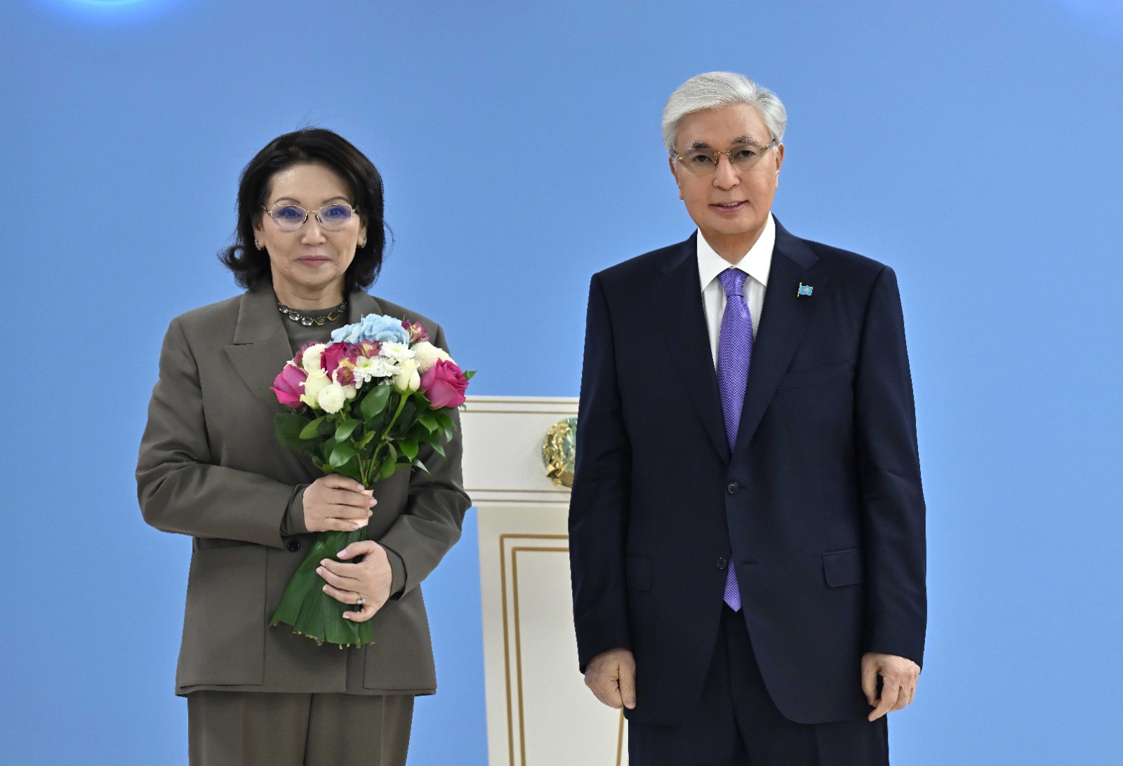 Мемлекет басшысы Алматы қаласының «Мектеп оқушылары сарайының» директоры Айгүл Байсымақоваға мемлекеттік награда тапсырды