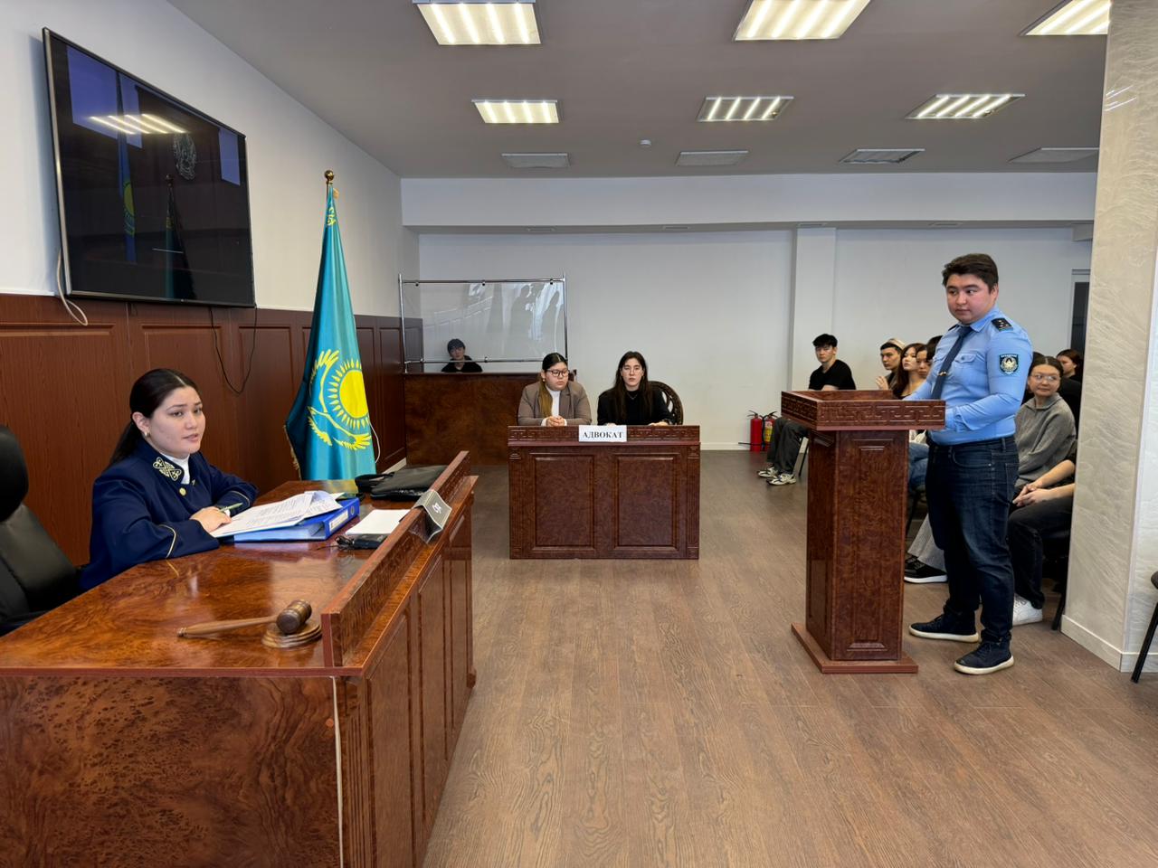 Іс-шара қатысушылары интерактивті форматта сот талқылауының барысымен, процеске қатысушылардың рөлдерімен және қылмыс жасаудың құқықтық салдарымен танысты.