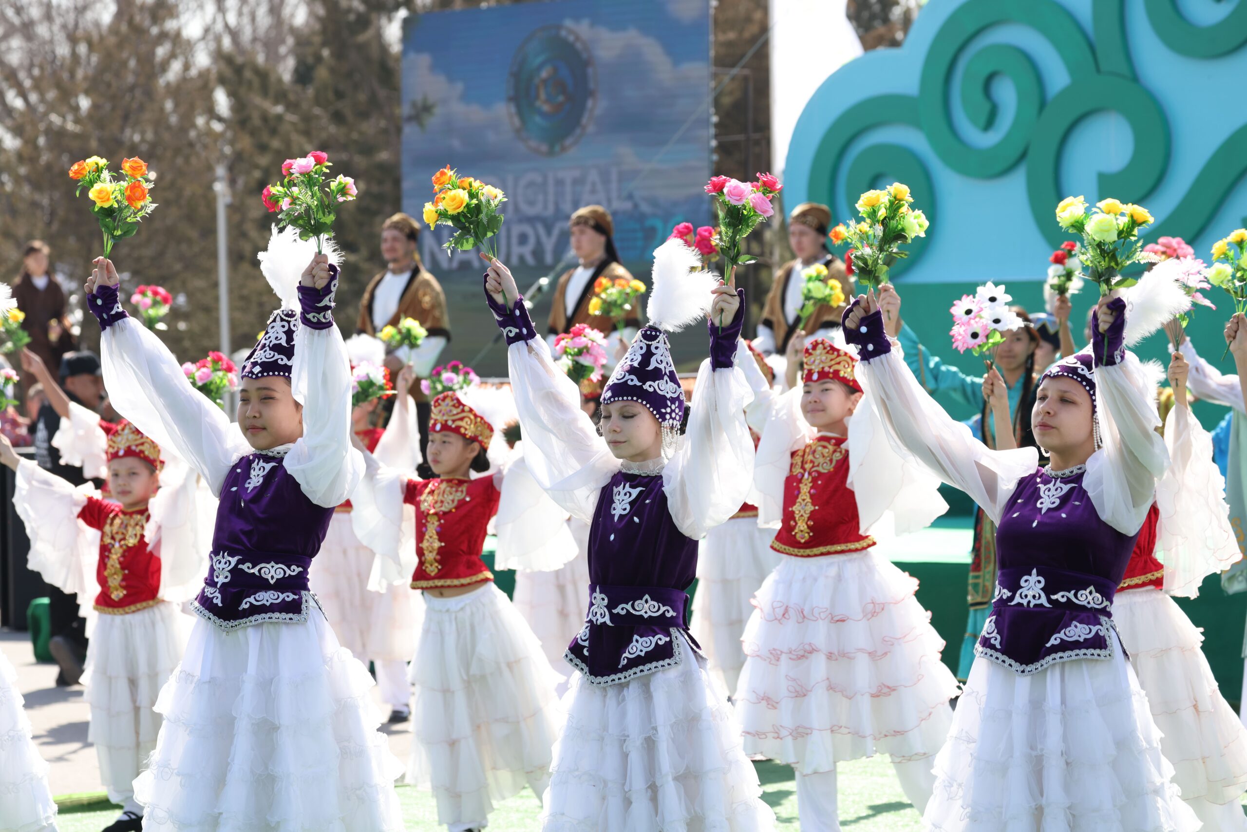 Шара барысында сахнада театрландырылған қойылым көрсетіліп, Роза Рымбаева, Нұрболат Абдуллин, Өмірқұл Айниязов, Тамара Асар сынды эстрада жұлдыздары, «Қоңыр» тобы, «Құлансаз» ансамблі және басқа да өнерпаздар халыққа мерекелік көңіл-күй сыйлады. Саябақ аумағында қолөнер шеберлерінің көрмесі, ұлттық ойындар және тақырыптық аймақтар жұмыс істеді. «Жеті қазына» интерактивті кітабы арқылы ұлттық мұра жаңа сипатта дәріптелді. «Face of Nauryz» алаңында келушілердің бейнесі жасанды интеллект көмегімен өңделіп, заманауи стильде ұсынылды. Сондай-ақ роботтардың қатысуымен қызықты бағдарлама ұйымдастырылды. Тіпті құлтемірлер бауырсақ пісіріп, тұрғындарға ұсынды. Жалпыхалықтық мерекеге айналған Ұлыстың ұлы күні осылайшы Алматы облысында кең көлемде тойланды. Қонаев қаласындағы орталық алаңға бес мыңнан астам халық жиналып, мерекелік шара «Digital Nauryz» тұжырымдамасына сай тікелей эфирде көрсетілді.