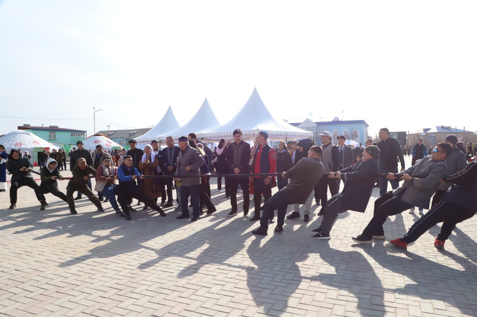 Алаңда ұлттық спорт түрлерінен сайыстар ұйымдастырылып, арқан тартыс, гір көтеру, қол күрес, асық ату секілді ойындар мерекенің ажарын аша түсті.