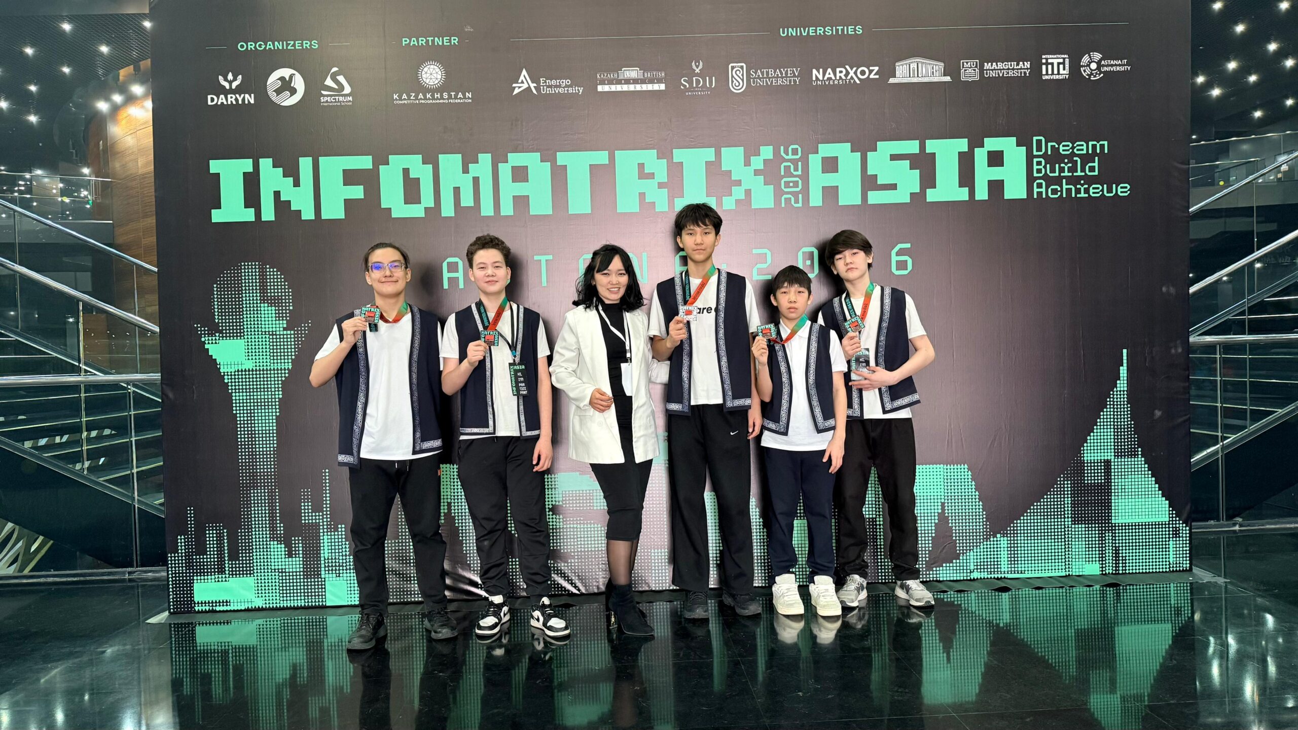 Астана қаласындағы №115 жалпы орта мектебінің оқушылары INFOMATRIX-ASIA 2026 халықаралық байқауында жоғары нәтиже көрсетіп, қола медаль иеленді, деп хабарлайды елорда әкімдігінің ресми сайты.