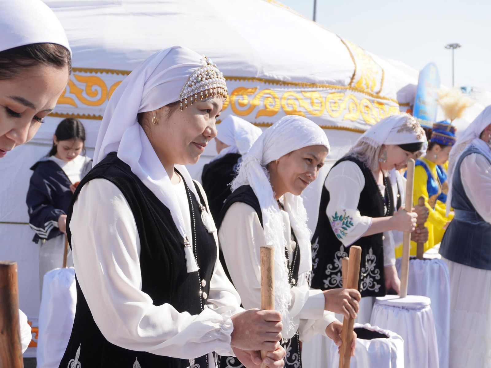 🔰Алаңда мекеме және кәсіпорындар, сонымен қатар, қала мен ауылдық округтердің қазақы көріністі айқындайтын киіз үйлерде “Тұсаукесер”, “Ұршық иіру”, “Жүн түту”, “Сырға салу” сияқты түрлі көріністер қойылды. Жиналған халықтың қарасы мол. Келушілер ұлттық киіммен сән- салтанат құрып, шад-шадыман күй кешуде. Алтыбақан тепкен көңілді қыз – жігіттер ауылдың алты ауызын тамашалады.