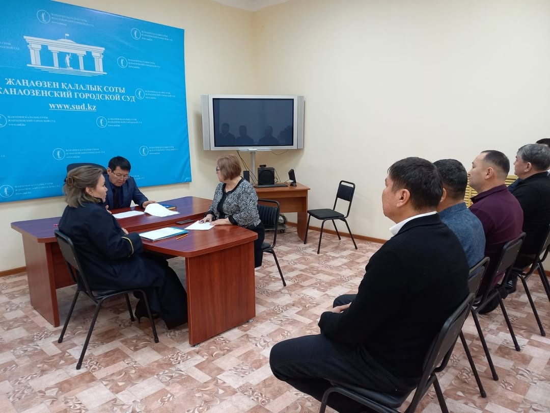 11.03.2026 жылы Маңғыстау облысының Әділет департаментінің «Жаңаөзен ауданаралық аумақтық мәжбүрлеп орындату бөлімі» филиалының басшысы – сот орындаушысы С.Есетова «Заң мен тәртіп» қағидатын ақпараттық ілгерілету мақсатында Сот қызметкерлері және жеке сот орындаушыларының қатысуымен Жаңаөзен қалалық сотының ғимаратында “Сот актілерін орындау” тақырыбында дөңгелек үстел өткізді.