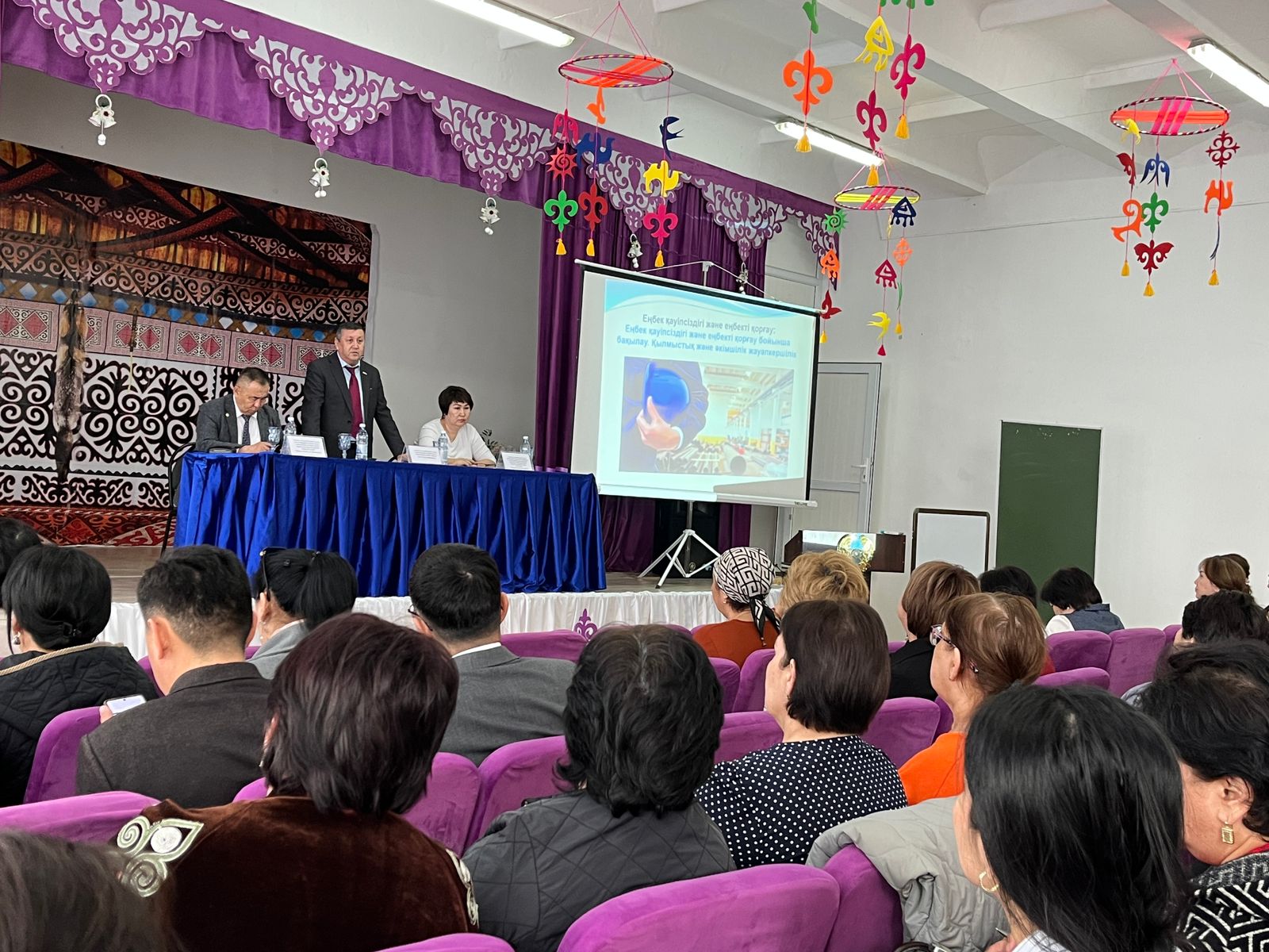 2026 жылдың 27 наурыз күні Махамбет ауданында «Е.Ағелеуов атындағы Махамбет орта мектебінің базасында «Еңбек қауіпсіздігі және еңбекті қорғау жұмыстарын ұйымдастыру, ұжымдық шарттарды жасақтау» тақырыбында семинар өтті.