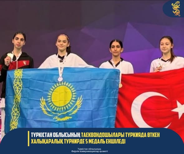 ТҮРКІСТАН ОБЛЫСЫНЫҢ ТАЕКВОНДОШЫЛАРЫ ТҮРКИЯДА ӨТКЕН ХАЛЫҚАРАЛЫҚ ТУРНИРДЕ 5 МЕДАЛЬ ЕНШІЛЕДІ