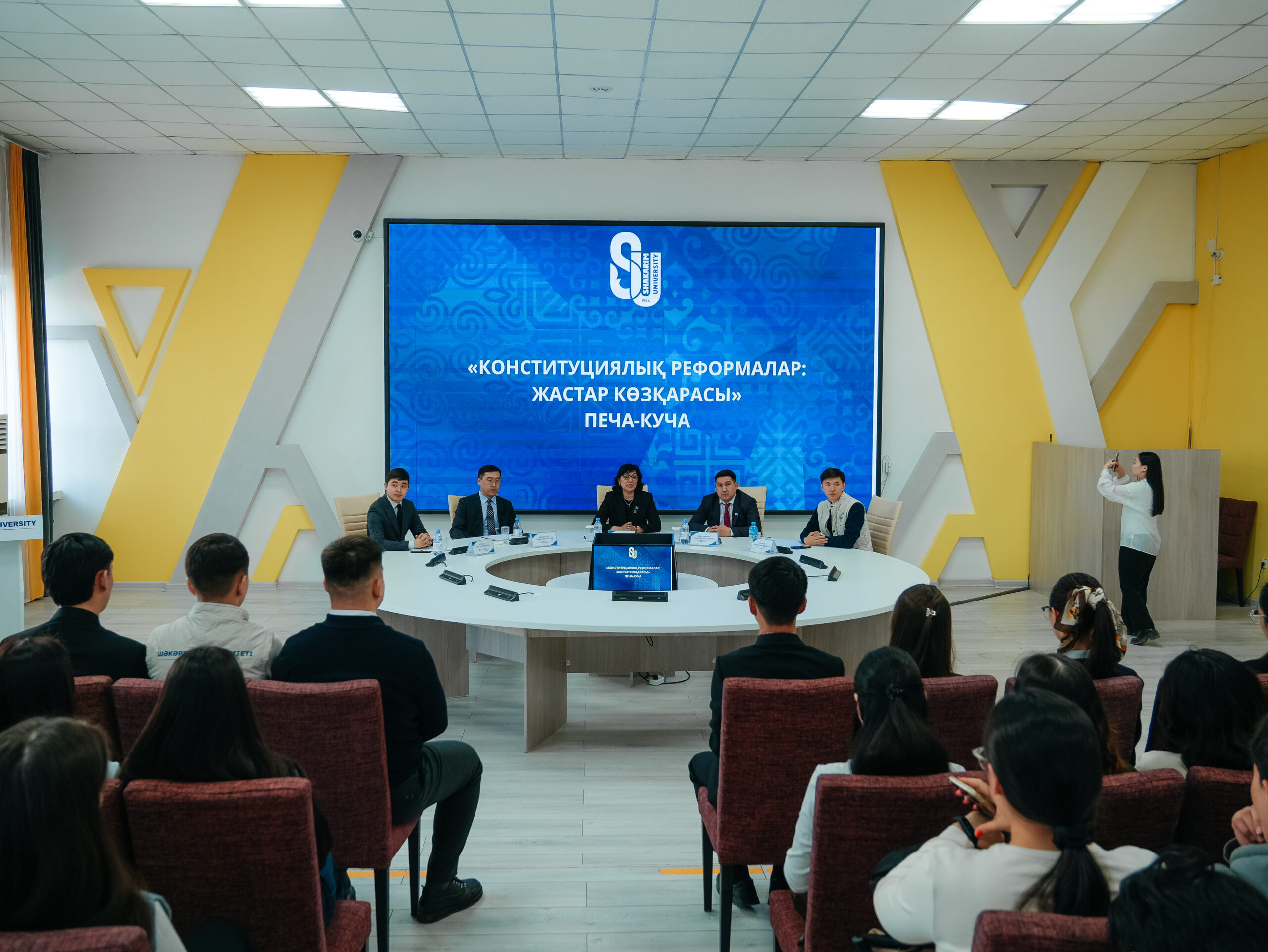 Шәкәрім университетінде абай облысы жастар саясаты мәселелері жөніндегі басқарма басшысы Олжас Түсіпбекұлының қатысуымен”Конституциялық реформалар: жастар көзқарасы” тақырыбында печа-куча форматында мазмұнды жиын өтті.