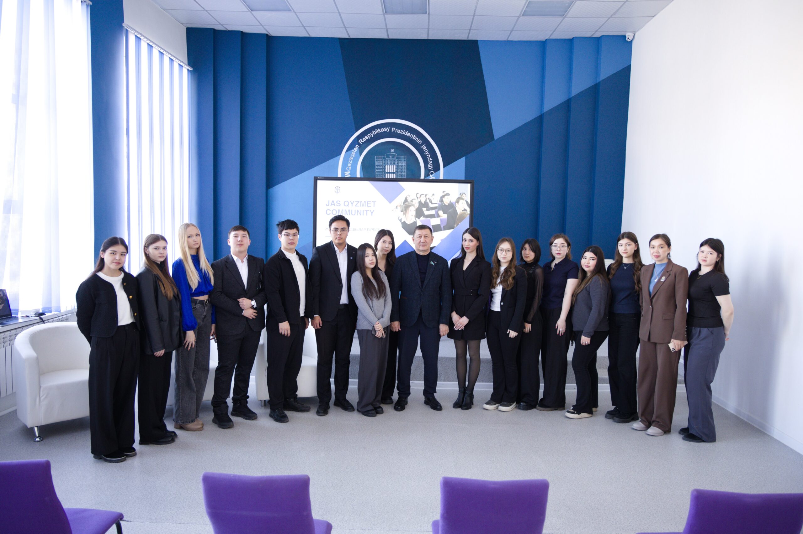 Облыстық мәслихат төрағасы Қарағанды облысы бойынша Қазақстан Республикасының Президенті жанындағы Мемлекеттік басқару академиясының филиалы ұйымдастырған «JasQyzmet Community» диалогтық алаңында жас қатысушыларымен-студенттермен кездесті.