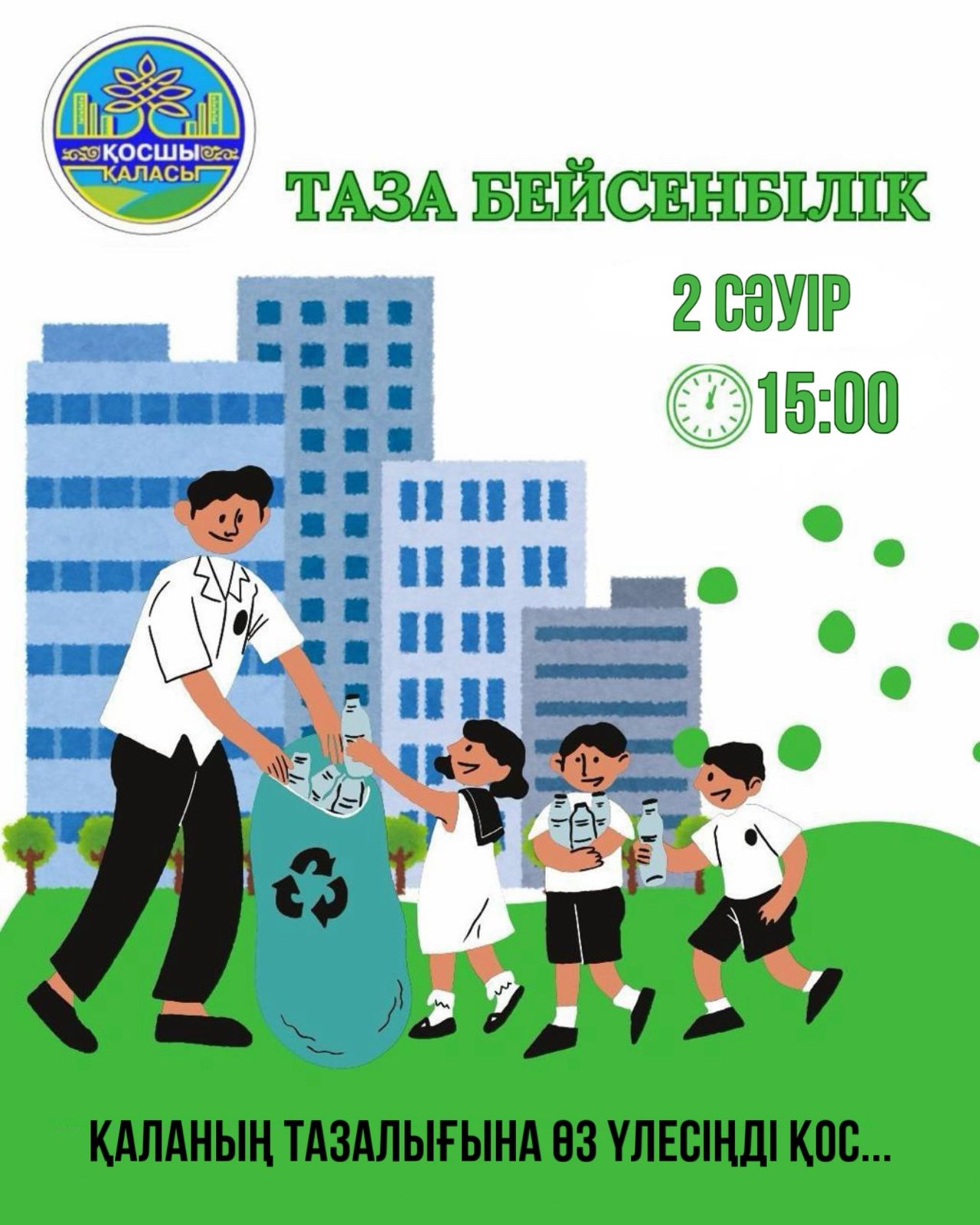 Баршаңызды Қосшы қаласын тазалау акциясына белсенді атсалысуға шақырамыз!