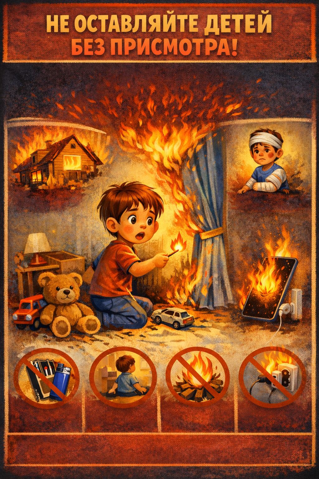 ❗️Балаларды бірнеше минутқа болса да қараусыз қалдырмаңыздар. Сіріңкемен, розеткамен, қуаттағыш құрылғылармен және ұялы телефонмен ойнау өртке және ауыр жарақаттарға әкелуі мүмкін.