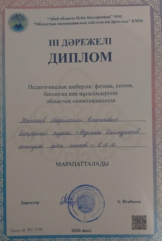 Физика, химия, биология пән мұғалімдері арасында өткен облыстық олимпиадада үздік нәтижелер көрсеткен ұстаздарды құттықтаймыз!
