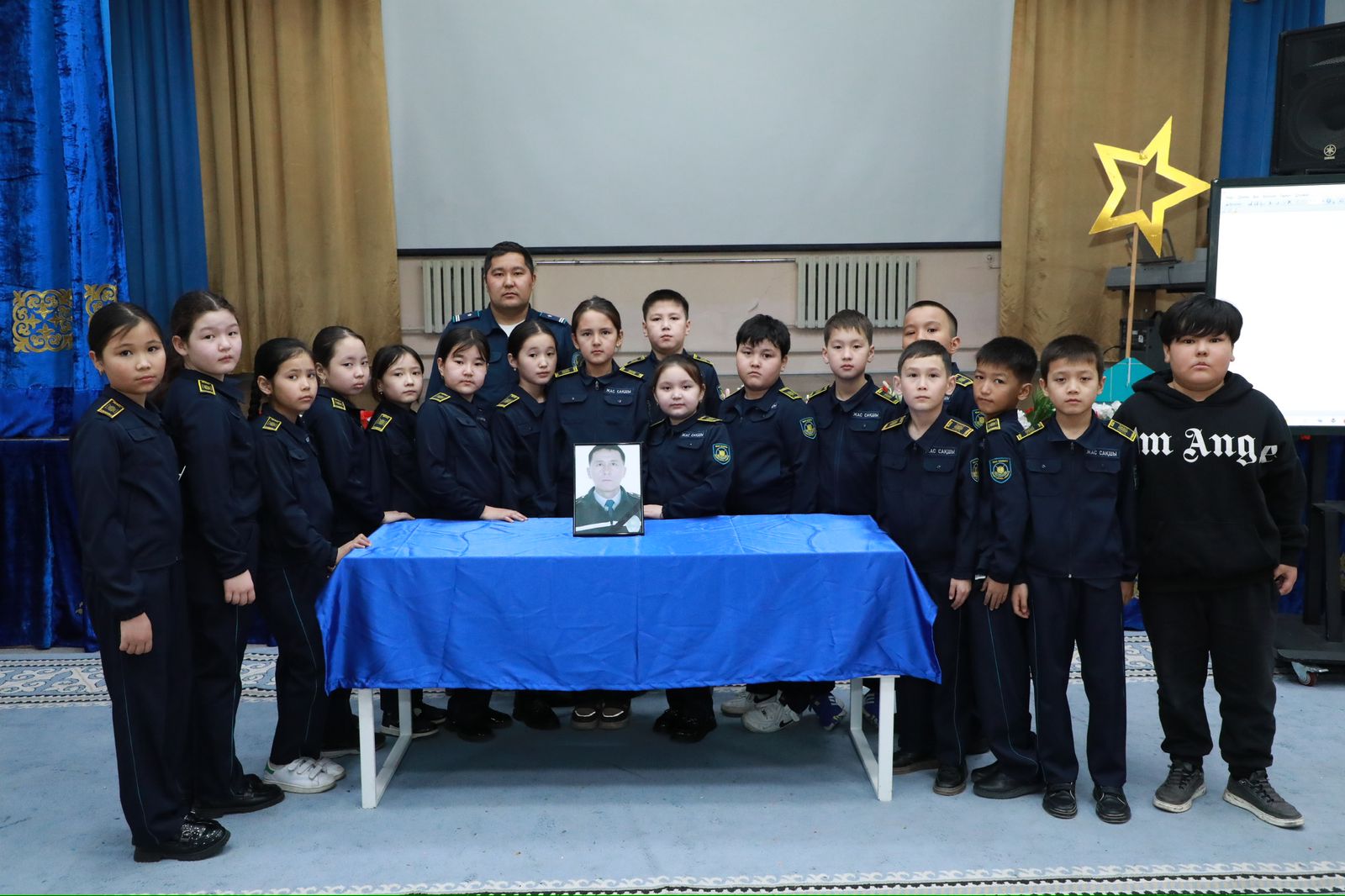 Оқушылар офицердің ерлігі, антына адалдығы және азаматтардың қауіпсіздігі үшін өзін құрбан етуге дайын болғаны жайлы әңгімелерді зор ықыласпен тыңдады.