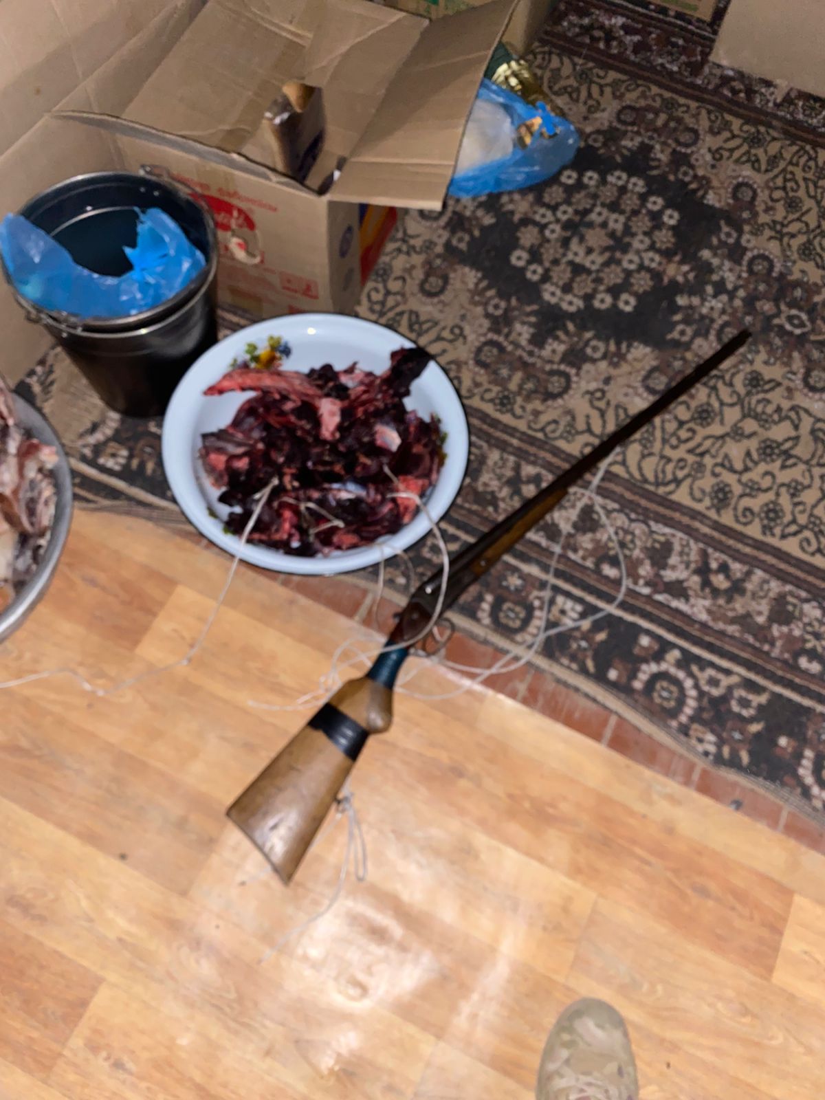 🔹️Ол өз түсінігінде екі -үш күн бұрын, жылқы іздеп жүріп, мотокөлікпен қарақұйрық аңын қуып жүріп, құлатып, оны сол жерде сойып, үйге алып келгенін, басы мен терісін қапқа салып, екі шақырым жерде далада тастап кеткенін айтты. Осыған қосымша өз еркімен құжатсыз сақтап,қолданып жүрген 16-шы калибрлі мылтығын, екі патронымен берді.