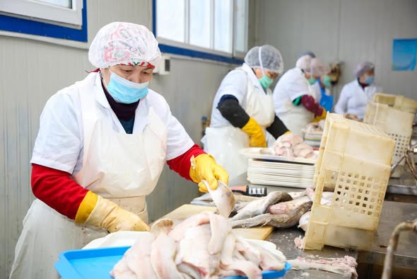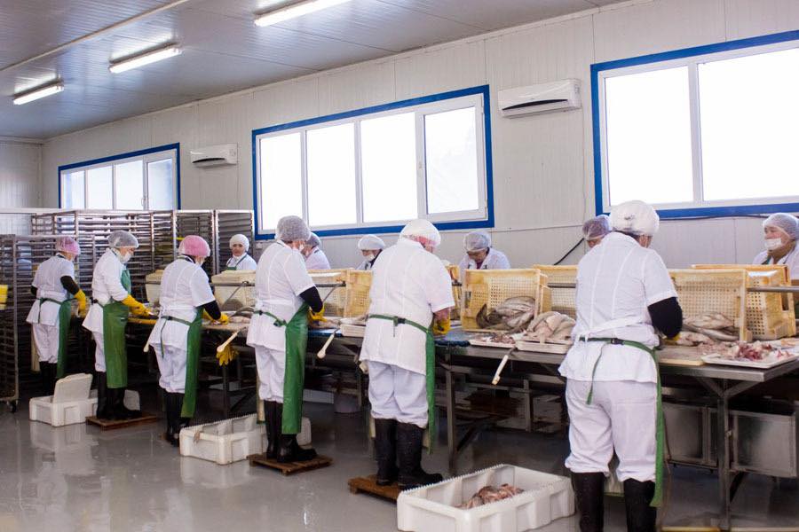 Балық өңдеу цехында 50 қызметкер жұмыс жасайды.