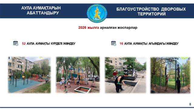 Қаланың жайлы және қолайлы ортасын қалыптастыруға ерекше назар аударылады. Ауданда қоғамдық орындар, аула және балалар алаңдарын абаттандыру жұмыстары жалғасып жатыр, бұл тұрғындардың өмір сүру сапасын арттыруға және қала қонақтары үшін қолайлы жағдай жасауға бағытталған.