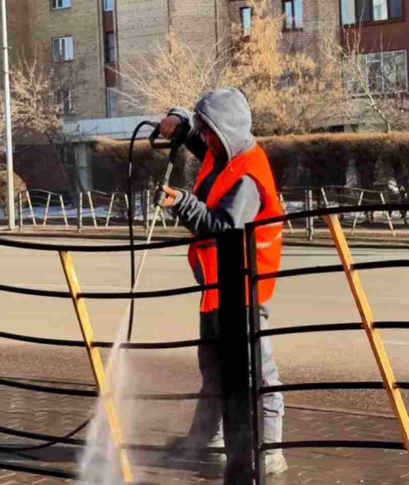 Осы күні ауданда қыс бойы жиналған шаң мен кірден жол жабынын, жол белгілерін, қоршауларды, жерасты өткелдерін және аула аумақтарын кезең-кезеңімен тазарту жұмыстары басталды.