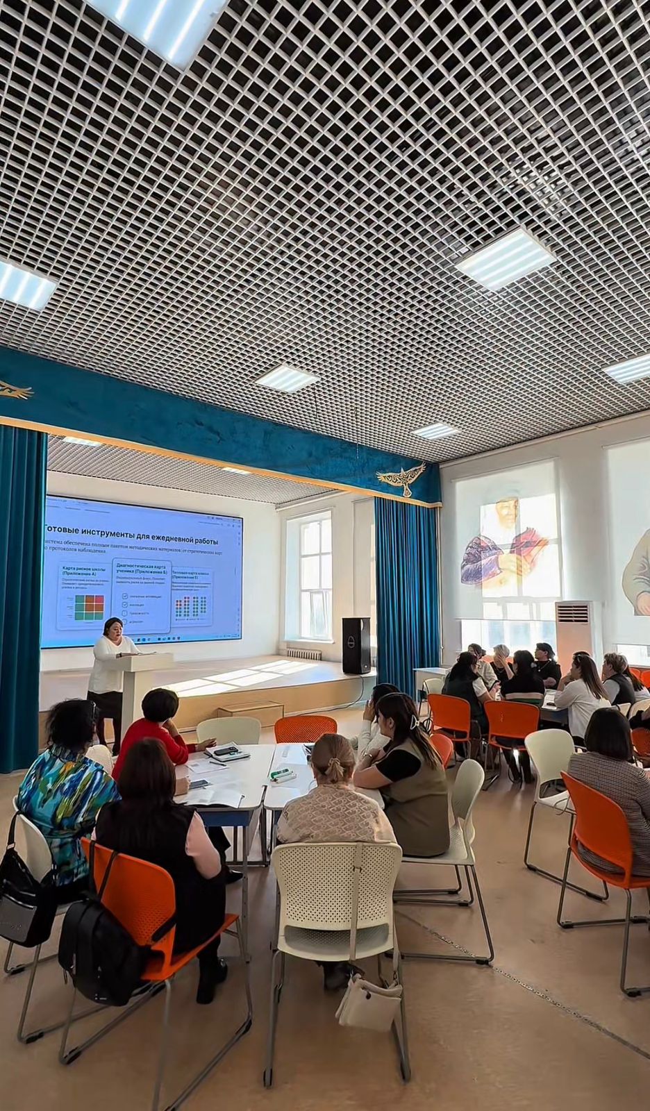 Практикалық бөлім аясында тәрбие жұмысы жөніндегі директордың орынбасары Әлия Өтегенова, сынып жетекшілері Махабат Жапарханова, Екатерина Генрих және Айнұр Мұхамбетжанова, қоғамдық тәрбиеші Ержан Жұманов, сондай-ақ психолог Майгүл Сансызбаева сөз сөйледі. Олар мониторингтің тиімді құралдарын, психологиялық қауіпсіздікті бағалау әдістерін, проактивті тәсілдер мен цифрлық шешімдерді, соның ішінде «жылу картасы» мен «MOOD» қосымшасын таныстырды.