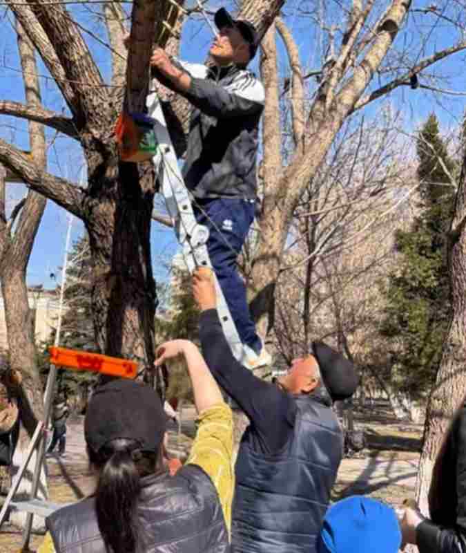 №5 «Ақбота» балабақшасының бүлдіршіндері әкелерімен бірге ұяларды іліп, табиғатқа өз үлестерін қосты.