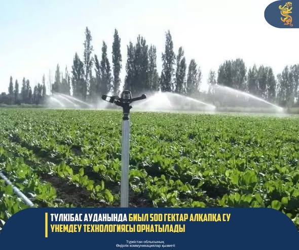 ТҮЛКІБАС АУДАНЫНДА БИЫЛ 500 ГЕКТАР АЛҚАПҚА СУ ҮНЕМДЕУ ТЕХНОЛОГИЯСЫ ОРНАТЫЛАДЫ