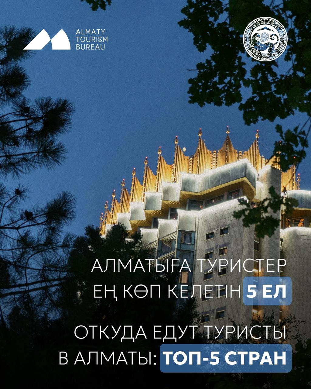 2025 жылғы деректерге сәйкес, Алматыға келетін туристердің басым бөлігін Ресей, Қытай, Үндістан, Түркия және Оңтүстік Корея елдері құрайды.