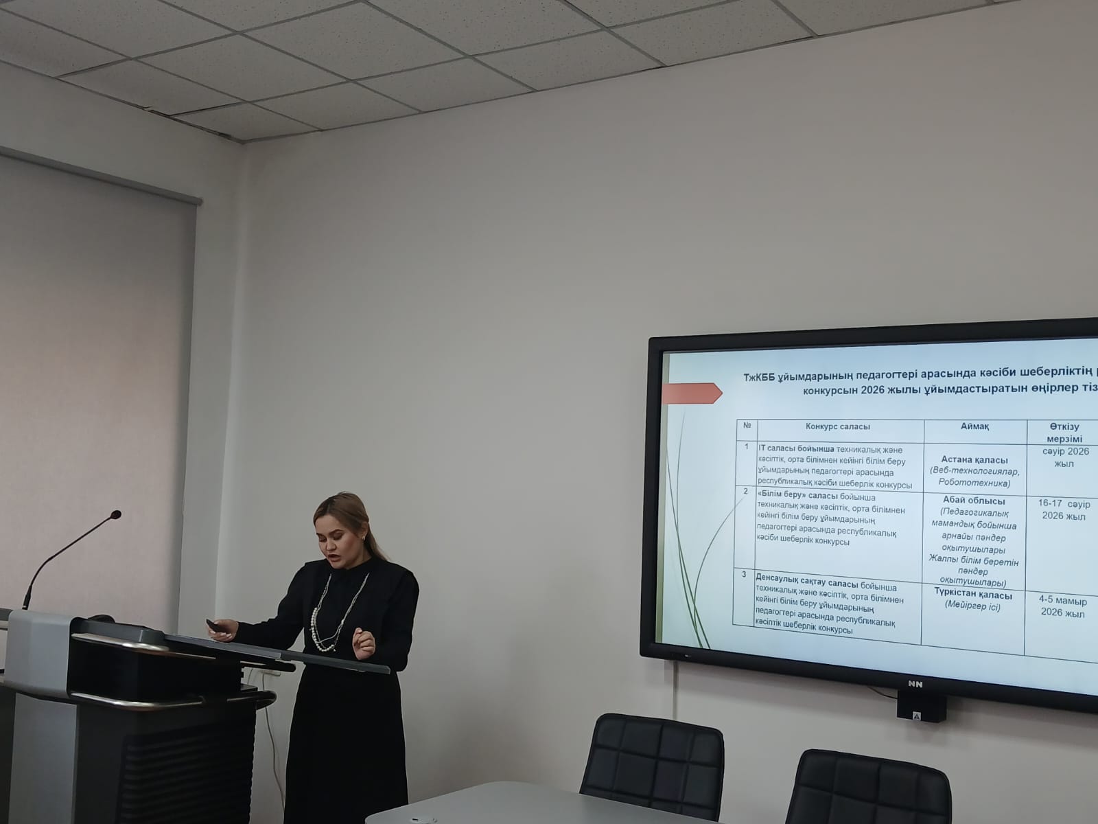 Семинар 2026 жылға арналған педагогтердің республикалық байқауларға қатысу кестесі мен біліктілікті арттыру курстарының жоспарын таныстырумен қорытындыланды. Аталған ақпаратты Әлия Жақыбай ұсынды.